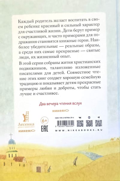 Every parent wants to instill in their child a beautiful and strong character for a happy life. Children look to others for examples, and often, book characters become role models. The most compelling are real-life images, and among them, the most beautiful are those of saints and their life experiences. This series contains the lives of Christian ascetics, skillfully told by authors for children. Reading these books together creates a wonderful family tradition and gives children wonderful examples of love and kindness, helping them become better and happier.