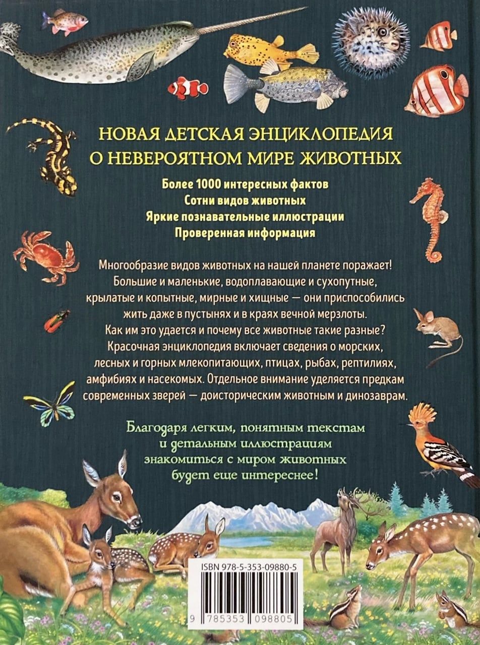 This book will introduce the reader to the amazing world of animals. It tells about the most incredible creatures that live in all corners of the Earth, and also contains interesting information about life on our planet long before the appearance of people. Excellent illustrations give a clear idea of both modern animals and those that died out many millions of years ago.