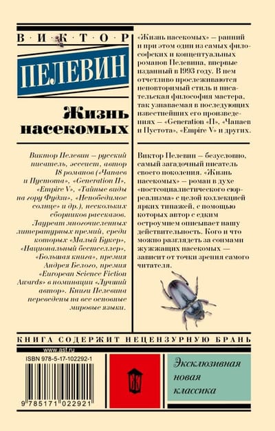 Victor Pelevin is undoubtedly the most enigmatic writer of his generation. "The Life of Insects" - a novel in the spirit of "post-socialist surrealism" with a whole collection of vivid types, through which the author with caustic wit describes our reality. Who and what can be seen behind the humming insects depends on the reader's point of view.