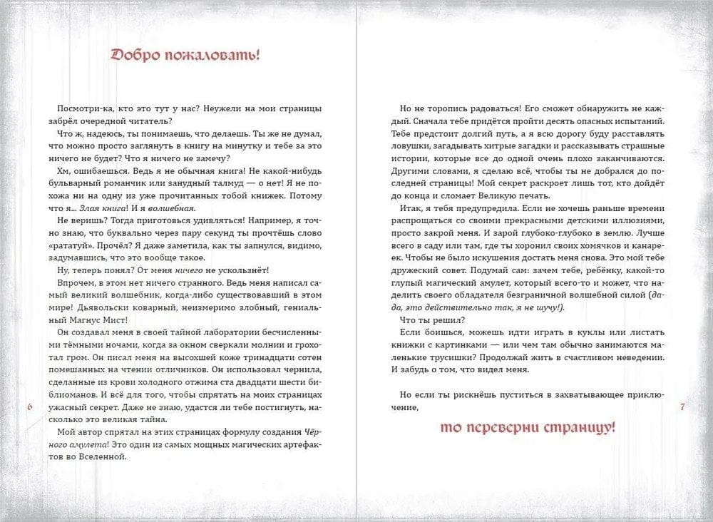 This is a very unusual book! After all, on its pages are hidden real magic spells, a couple of monsters and a whole sea of riddles! The evil book is looking for a reader who is ready to pass a confusing quest and become the owner of the Black Amulet. This artifact will endow its owner with immense magical power. And it seems that YOU could be the next all-powerful wizard! After all, you are not a cowardly bunny and definitely not afraid of the stories of the Evil Book. Get ready for an exciting adventure and hurry up and open the first page! Publisher's warning: READ THIS BOOK VERY DANGEROUS! WE'VE DONE EVERYTHING WE CAN TO STOP HER! BUT SHE'S EASILY ENSLAVING HER READERS! BECAUSE IT'S... TOO COOL. For fans of The Little Evil Book.