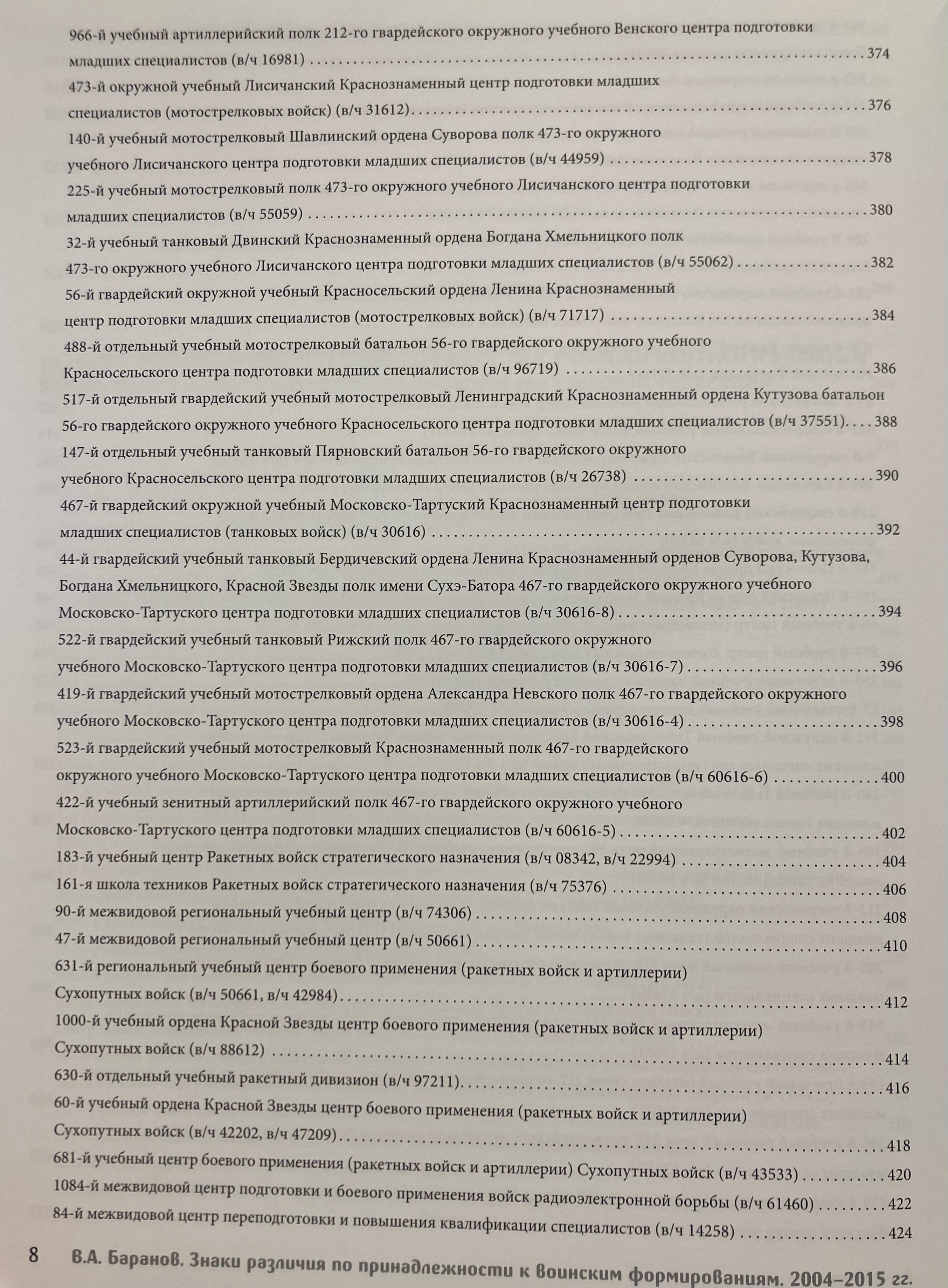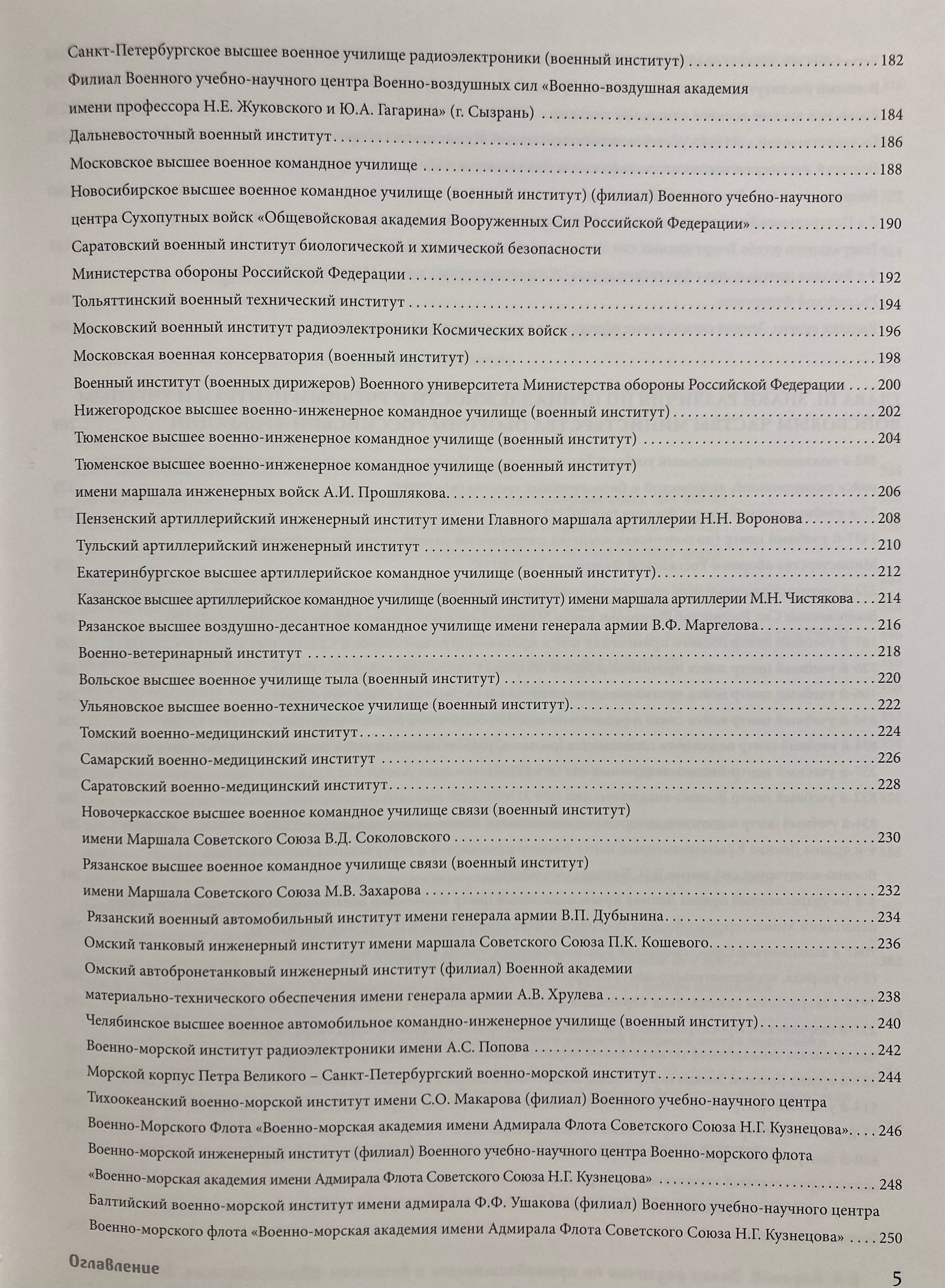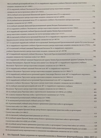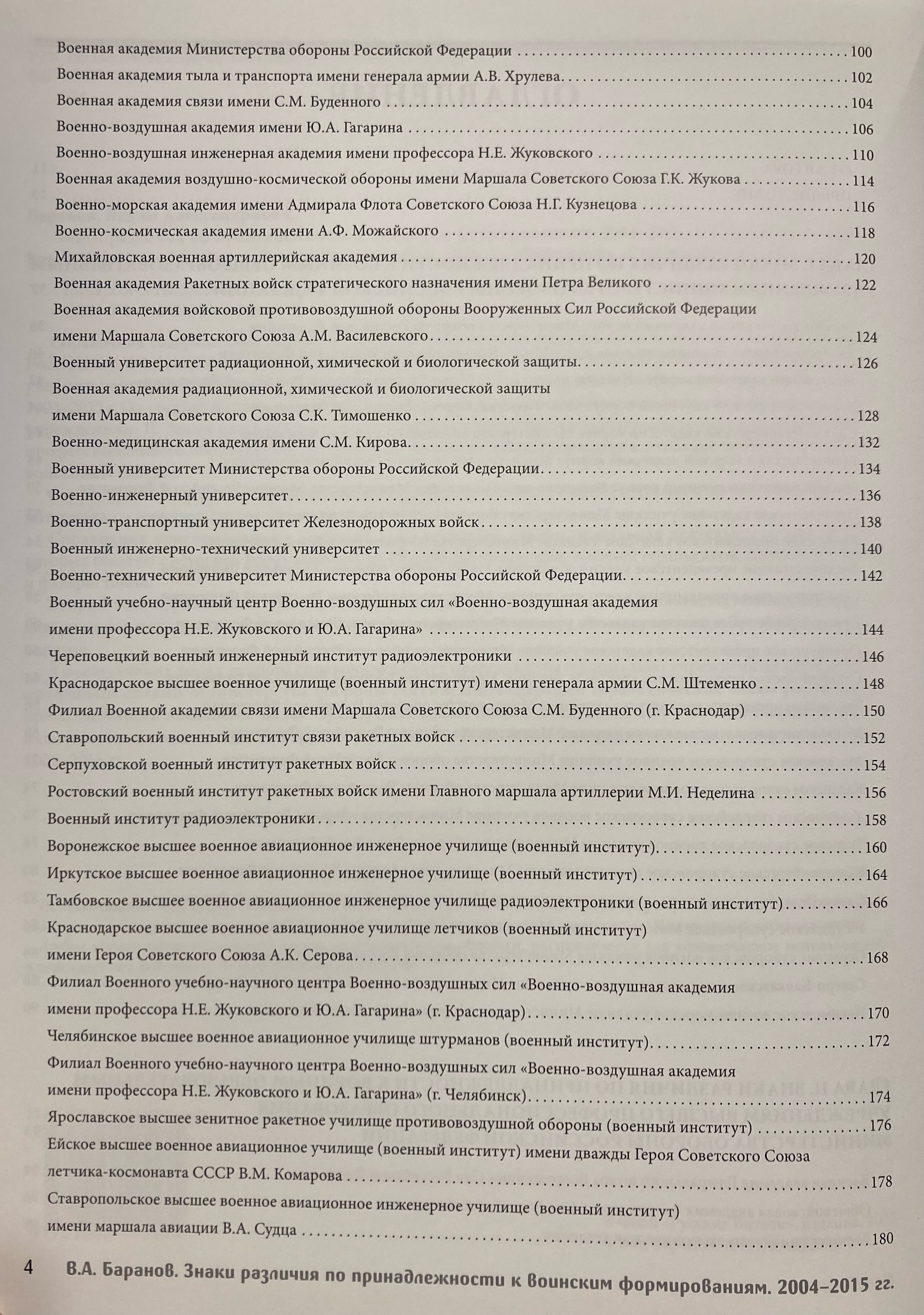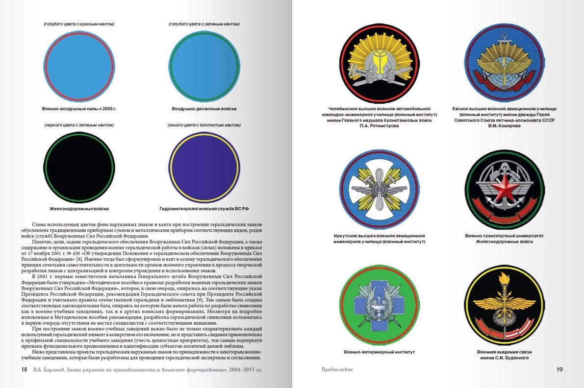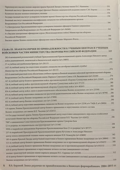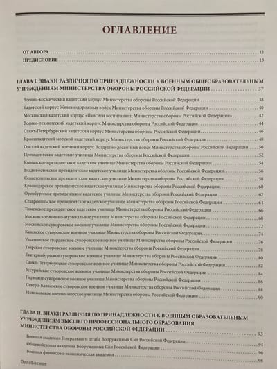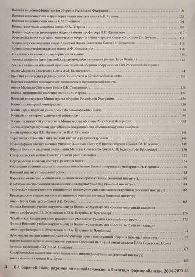 The reference book contains heraldic insignia of affiliation with military educational institutions, training centers and training military units of the Russian Ministry of Defense officially established by regulatory and legal acts of the Russian Federation Ministry of Defense in the period 2004-2015. It consists of three large chapters: