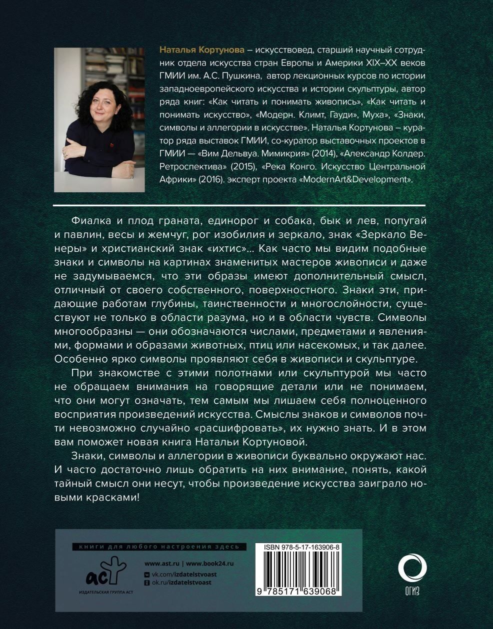 We are separated from the creators of these now famous works of fine art by hundreds of years, and sometimes by whole millennia. These people existed in a different system of life coordinates and believed in other gods. The monuments preserved from those ancient times were intended not only to please the eye and surprise with the subtlety of execution, but also often carried a certain idea, which contemporaries read without much difficulty. We, however, receiving at acquaintance with these monuments purely aesthetic pleasure, often overlook their semantic meaning, not paying attention to the speaking details or not understanding what they may imply, and thus we deprive ourselves of a full perception of works of art. The meanings of signs and symbols are almost impossible to accidentally "decipher", you need to know them. The new book by Natalia Kortunova, a well-known art historian, senior researcher at the Pushkin State Museum of Fine Arts, and curator of a number of exhibitions at the State Museum of Fine Arts, will help you do just that.