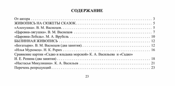 The album offers a methodology of pedagogical work, presents outlines of lessons and color reproductions of famous artists to familiarize children aged 6-7 with fairy-tale painting.