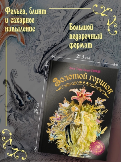 The heroes of Ernst Theodor Amadeus Hoffmann's fairy tale "The Golden Pot" are the writer's contemporaries, residents of Dresden. Their everyday lives are described in detail and realistically, but this world is intricately intertwined with the world of poetry: the apple seller turns out to be an evil sorceress, the secret archivist Lindhorst is the fire spirit Salamander from the magical land of Atlantis, and the golden-green snake that the protagonist sees in the elderberry bushes is Salamander's daughter. The airy and dynamic illustrations by the honored artist of Russia, Nika Golts, transport the reader from the streets of a rather prosaic Dresden to the office of the mysterious Lindhorst, and to the wondrous land of Atlantis.