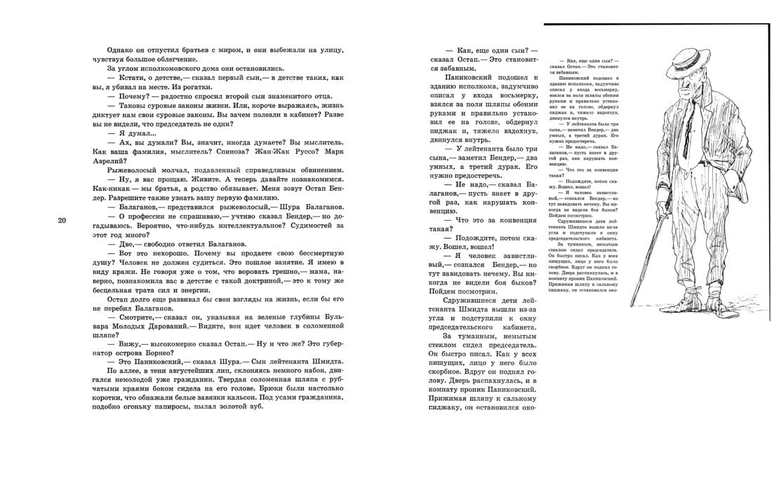 The frenzied success that fell on Ilya Ilf and Yevgeny Petrov after the publication of "The Twelve Chairs" (1928), prompted the co-authors to "resurrect" their hero, the irrepressible and charming swindler Ostap Bender, and take up the creation of the novel "The Golden Calf" (1931). Dilogy, which entered the golden fund of domestic literature of the twentieth century and withstood hundreds of reprints, is very rarely published accompanied by magnificent illustrations created by Kukryniksy. This edition gives readers the opportunity to get acquainted with this work by Mikhail Kupriyanov, Porfiry Krylov and Nikolai Sokolov, better known by their sonorous collective pseudonym. Outstanding caricaturists, classics of book illustration, managed not only to convey the atmosphere of the 1920s: their creative style was incredibly consonant with the sparkling satire of Ilf and Petrov.