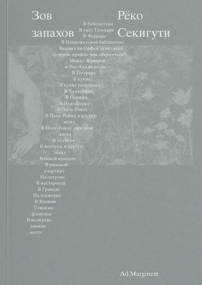 “The world is made up of a dizzying movement of smells.” People, animals, plants, things, memories — everything forms an olfactory pattern that runs through our lives and connects them. In her new text (2024), Japanese writer Ryoko Sekiguchi opens up a diary of smells for us — stories of several women from different countries and eras, told through the prism of their olfactory impressions. Novels alternate with quotes from books and reflections on the semiotic role of smells, questions about the properties and possibilities of fragrant molecules: what does a secret smell like? Is there a scent of shadow? And what about partings? Will we find the scents of those we once knew and loved? Sekiguchi considers smell not only as a “continuation of presence,” but also as a means of cognition capable of disrupting our usual relationships with time and space.