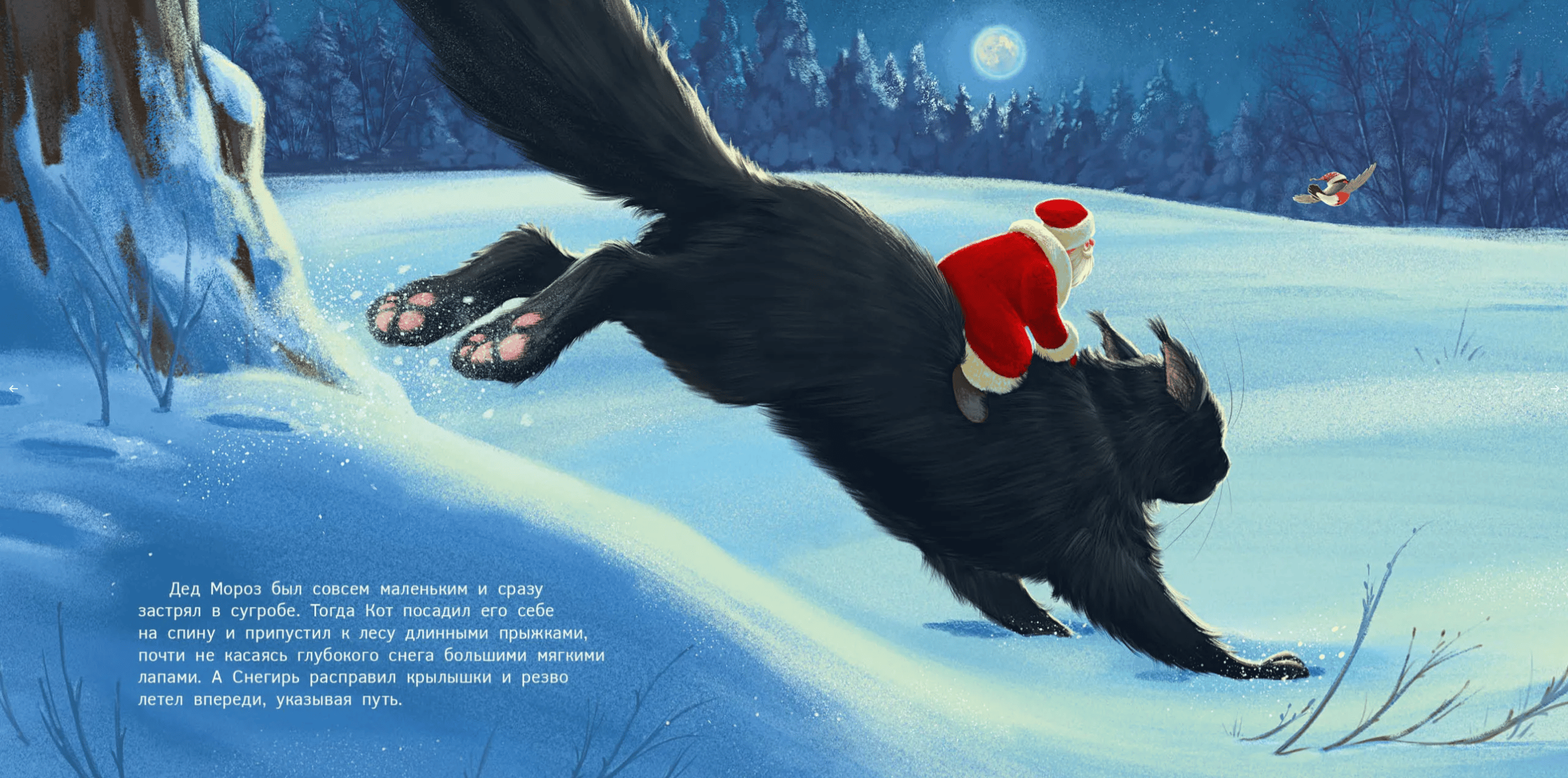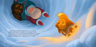 Before the New Year, Father Frost had a lot to do. He counted the presents, tidied up the Christmas tree, and, gathering his friends—the Bullfinch and the Cat—he began to watch the snowflakes and stars through the window. Suddenly, a bright arc lit up the night sky: a little star, sparkling, disappeared behind the trees. His friends immediately set off to rescue her!