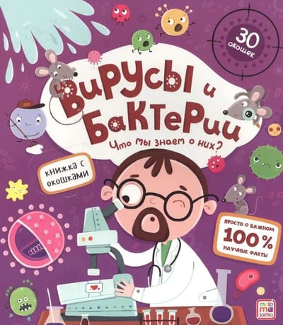 Logu grāmata "Vīrusi un baktērijas. Ko mēs par tiem zinām?" iemācīs jūsu bērnam par mikrobu pasauli, kas mūs ieskauj. Grāmatas iekšpusē ir 12 krāsainas lappuses un 30 lodziņi. Atverot tos, jūsu bērns iegūs daudz noderīgas un interesantas informācijas par vīrusiem un baktērijām, kas notiek mūsu organismā, kad tajā nonāk vīrusi, un kā attīstās kolektīvā imunitāte.