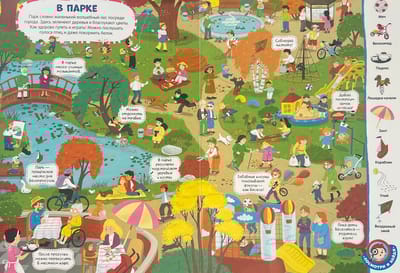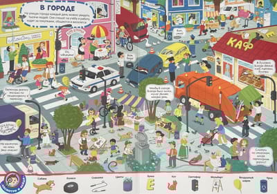 Wimmelbook ar lodziņiem "Pilsēta" ir liela, krāsaina bilžu grāmata, kuras lappusēs bērns var doties īstā ceļojumā cauri pārpildītai metropolei. Lodziņi ar interesantiem faktiem papildina ilustrāciju sižetu ar jautrām un neparastām detaļām. Katrā lappusē jūs pavadīs zosu ģimene, kas arī dzīvo šajā pilsētā un pārvērš parastu pastaigu parkā par jautru piedzīvojumu. Lodziņiem ir ērts padziļinājums bērnu pirkstiņiem, lai bērnam būtu viegli tos atvērt. Grāmata ir izgatavota no bieza kartona ar laminētu vāku. Pāršķirstiet grāmatu kopā ar savu bērnu, atveriet lodziņus un dodieties pastaigā brīnišķīgā noskaņojumā!