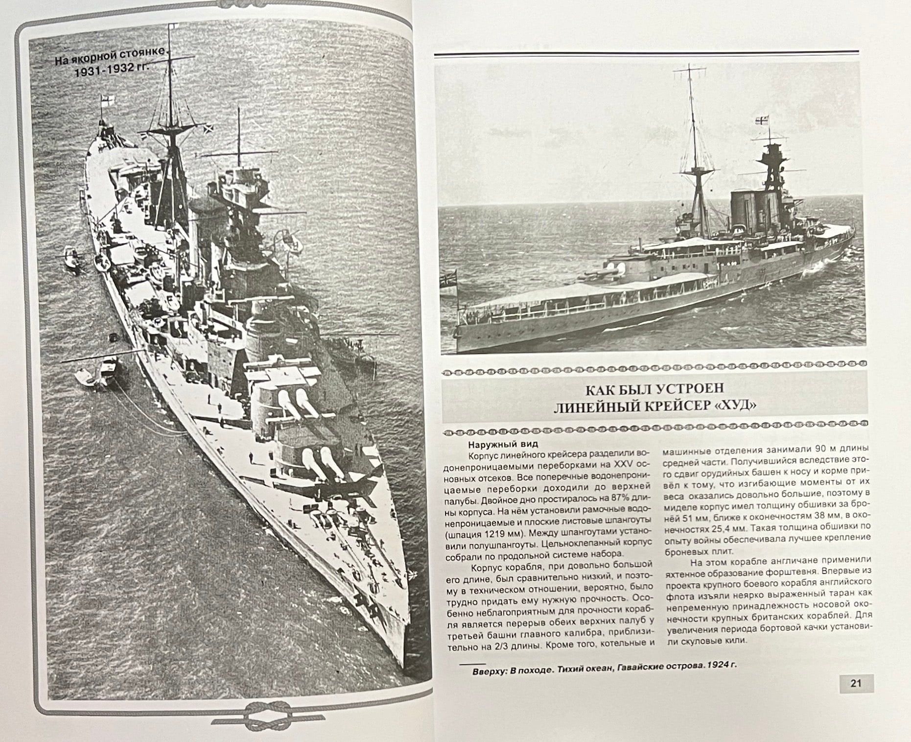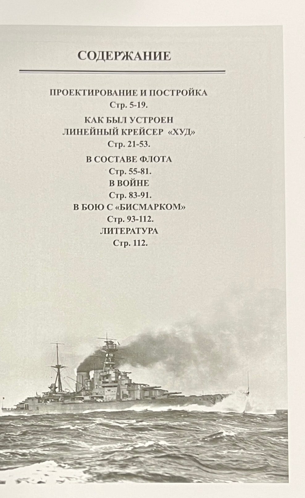 Sīki aprakstīta kuģa būve, pirmskara reisi, jūras operācijas un Otrā pasaules kara kaujas, kurās "Hood" piedalījās, kā arī kuģa nogrimšana 1941. gada 24. maijā.