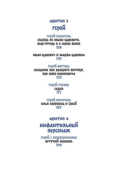 Šajā grāmatā ir krievu tautas pasakas ar kolorītiem vīriešu kārtas tēliem. Katrs varonis ir noteikta arhetipa iemiesojums, kuru ieraudzījis, var gūt jaunu izpratni par no bērnības pazīstamiem stāstiem.
