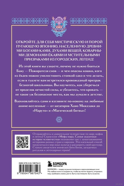 Piekrītam, ka pilnībā izprast Japānu un tās iedzīvotāju mentalitāti nav iespējams, taču šajā grāmatā apkopotie stāsti iepazīstinās jūs ar japāņu mitoloģijas un folkloras galvenajiem varoņiem un sižetiem, ar kuriem noslēpumainā japāņu kultūra kļūs vēl tuvāka.