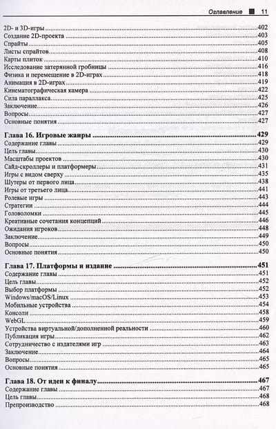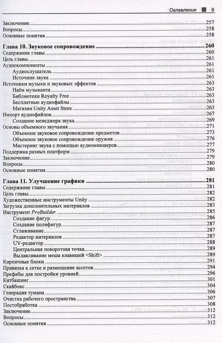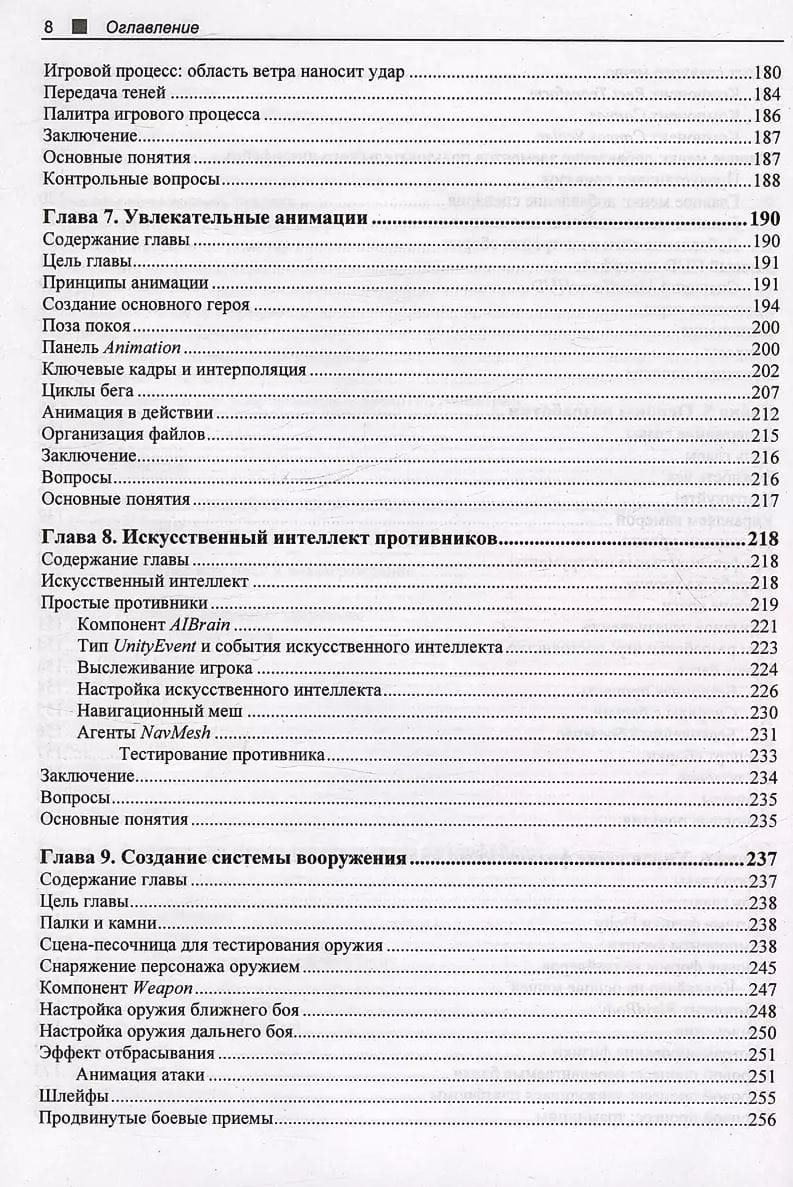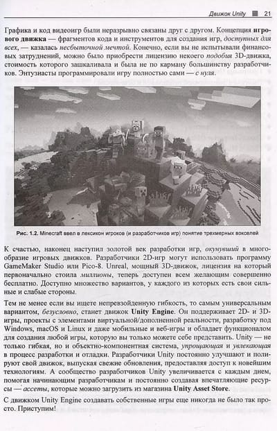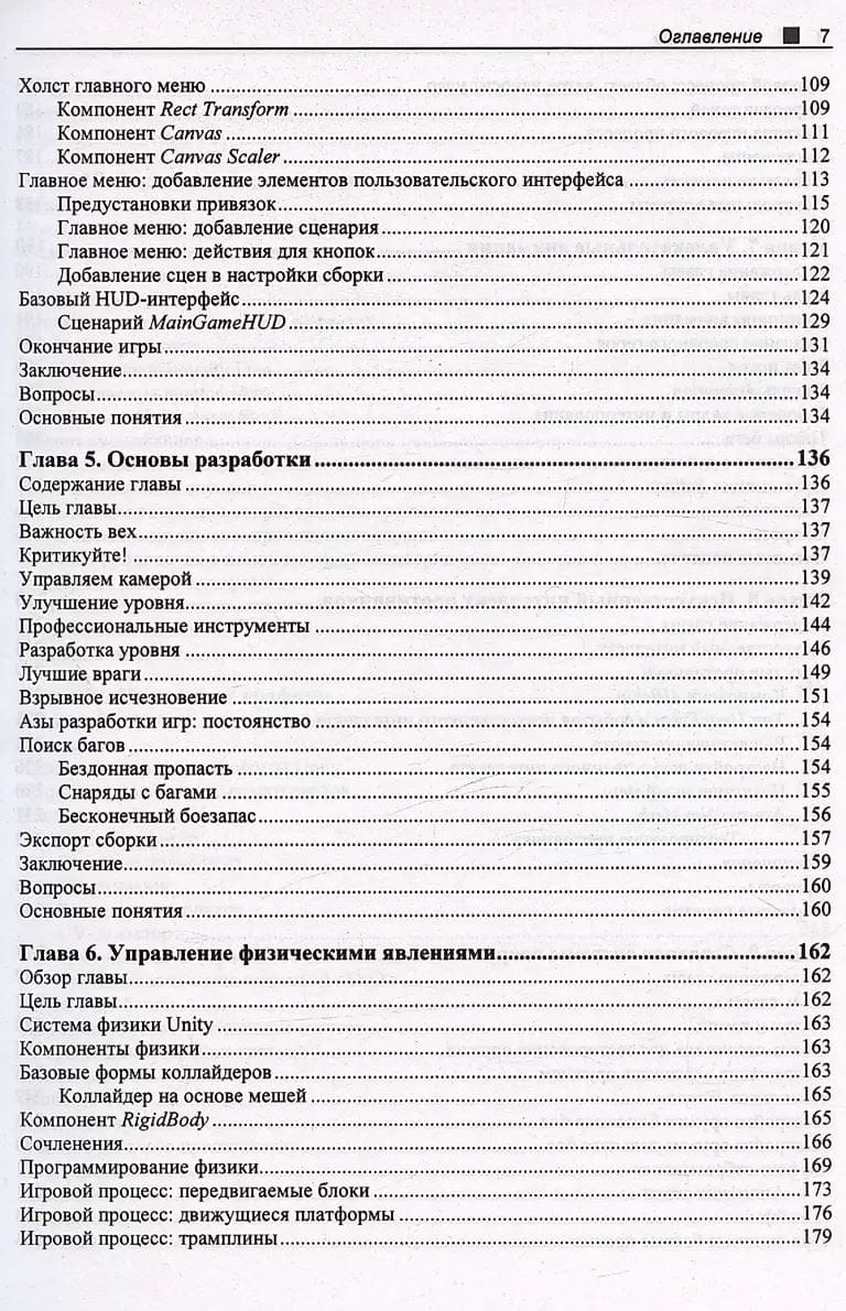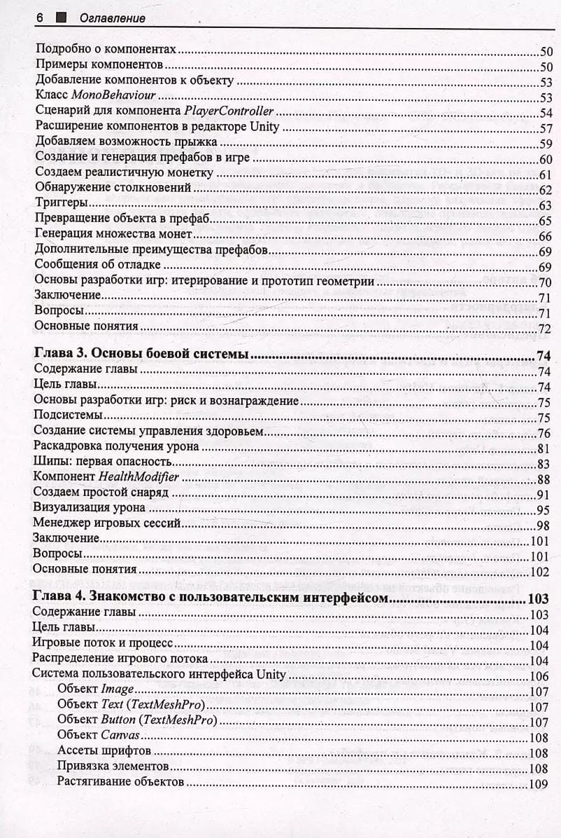 Pamata grāmata par Unity spēļu dzinēju 2D un 3D spēļu izstrādei C# valodā, izmantojot īpašus skriptus un bibliotēkas. Tiek aplūkoti spēļu programmēšanas pamatjautājumi: prototipu veidošana, vizuālo efektu radīšana, fizikas izstrāde, interfeisa dizains, programmas veiktspējas un reaģēšanas spēju uzlabošana. Uzmanība tiek pievērsta Unity spēļu dzinēja specifikai, spēļu sagatavošanai izdošanai, darbam ar C# skriptiem, lietojamībai, spēļu prototipu izstrādei un uzlabošanai.