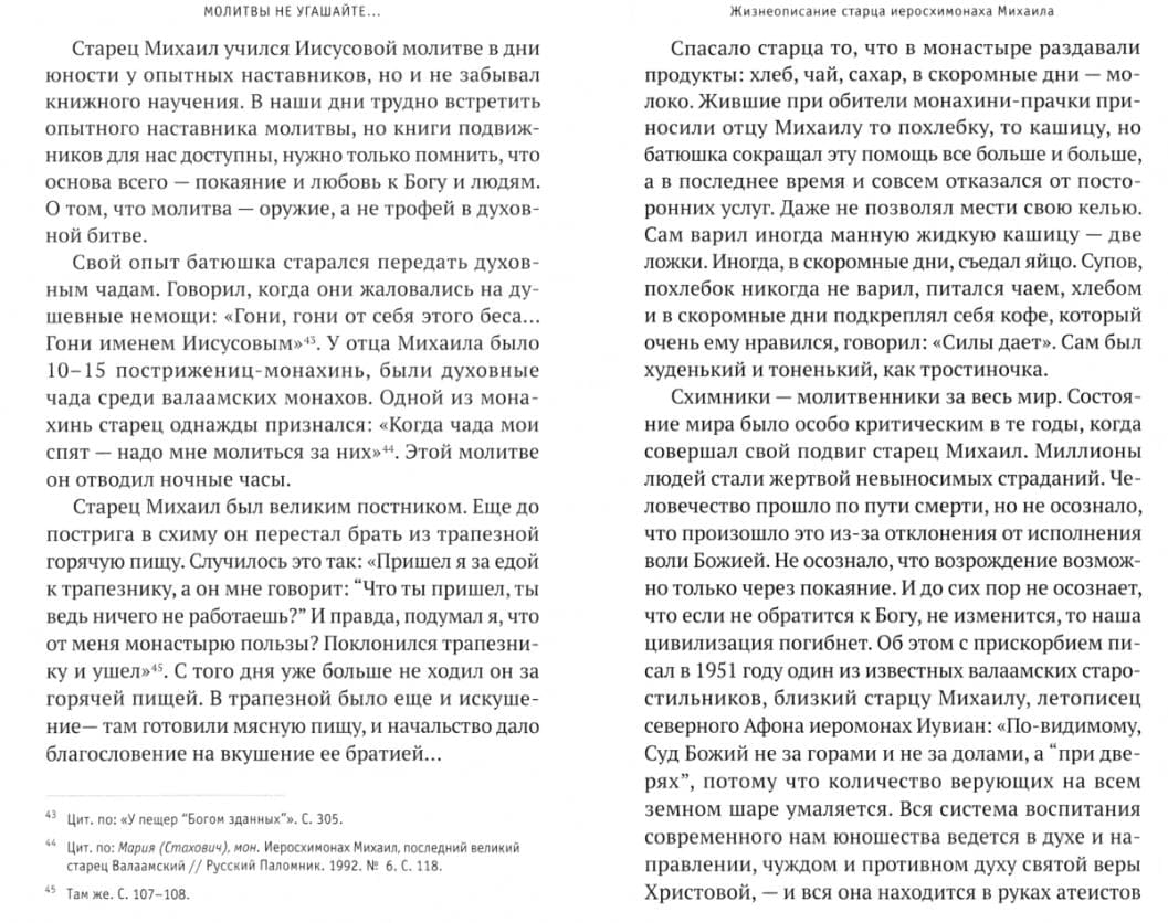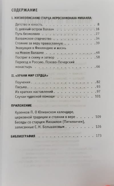 Klusais un lēnprātīgais vecākais tika saukts par shēmatisko mūku Mihailu (Pitkeviču). Par tādu viņš kļuva gan pateicoties personīgajām garīgajām pūlēm, gan tāpēc, ka pazemīgi pieņēma dzīves apstākļu audzināšanu, ko viņam sūtīja Dievs. Viņa agrīnā bāreņbērnība, klaiņošana pa Krieviju, sarežģītie dzīves apstākļi Valaamā un vēlāk, kad klostera iemītniekiem nācās pārcelties uz Somiju, - visas šīs dzīves mācības vecākais uztvēra kā Dieva mācību. Pleskavas-Pečerskas klosterī mūža nogalē tēvs Mihails, kurš daudzus gadus bija strādājis "prāta darba", sirsnīgas Jēzus lūgšanas ceļā, bija mazrunīgs jauno brāļu mentors. Viņa pierakstītās mācības var kalpot garīgās apgaismības lietai mūsdienās.