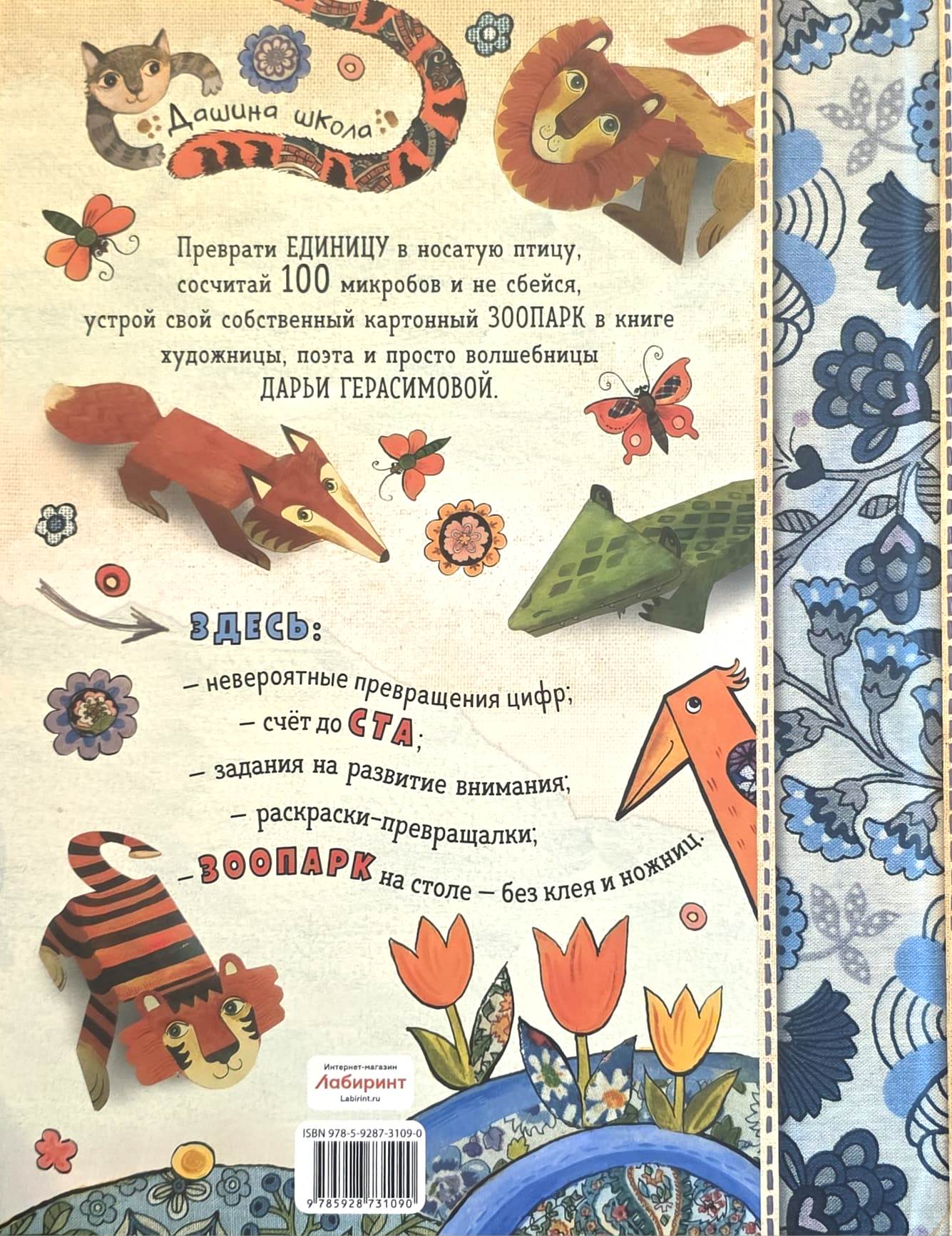 Darjas Gerasimovas jautrajā dzejas skolā tagad var apgūt ne tikai burtus, bet arī ciparus! Katrs skaitlis no 1 līdz 10 grāmatas lappusēs pārvēršas par smieklīgu radību: pieci par lapsu ar pūkainu asti, četri par putnu, divi par pūķi — un katram no tiem ir dzejolis, padarot skaitļu iegaumēšanu ļoti vienkāršu!