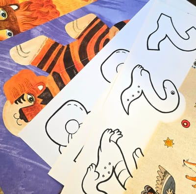 Grāmatas aizmugures kabatā ir paslēptas krāsojamās lapas skaitļu iegaumēšanai un vesels kartona zoodārzs: desmit 3D dzīvnieku figūriņas, kuras var saskaitīt — un atrisināt pirmos vienkāršos spēles uzdevumus.