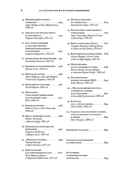 Jūs uzzināsiet par nozīmīgākajām operācijām, kas lika pamatus galveno medicīnas jomu attīstībai; kā tika atklāti nāvējošu slimību izraisītāji un kā tie tika uzvarēti; kā tika izstrādātas hronisku slimību un akūtu stāvokļu ārstēšanas metodes; kā tika izgudrots un uzlabots medicīnas aprīkojums un svarīgas zāles. Autors pieejamā veidā izskaidro sarežģītus medicīnas terminus un svarīgu fizioloģisko procesu būtību.