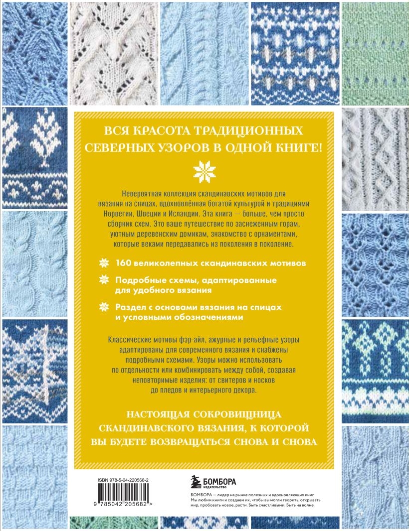 Šī grāmata ir īsts dārgumu krātuve adītājiem: godīgas salas, reljefa un ažūra raksti ar skaidrām shēmām un precīzu struktūru. Tos var kombinēt vai izmantot atsevišķi, lai radītu mājīgus, ar siltumu un raksturu piepildītus apģērba gabalus. Visi raksti ir pielāgoti mūsdienīgai adīšanai un ietver detalizētas shēmas un skaidru struktūru. Izvēlieties no 160 autentiskiem rakstiem un pārveidojiet tos unikālos priekšmetos: džemperos, segās, dūraiņos, zeķēs un interjera dekorā.
