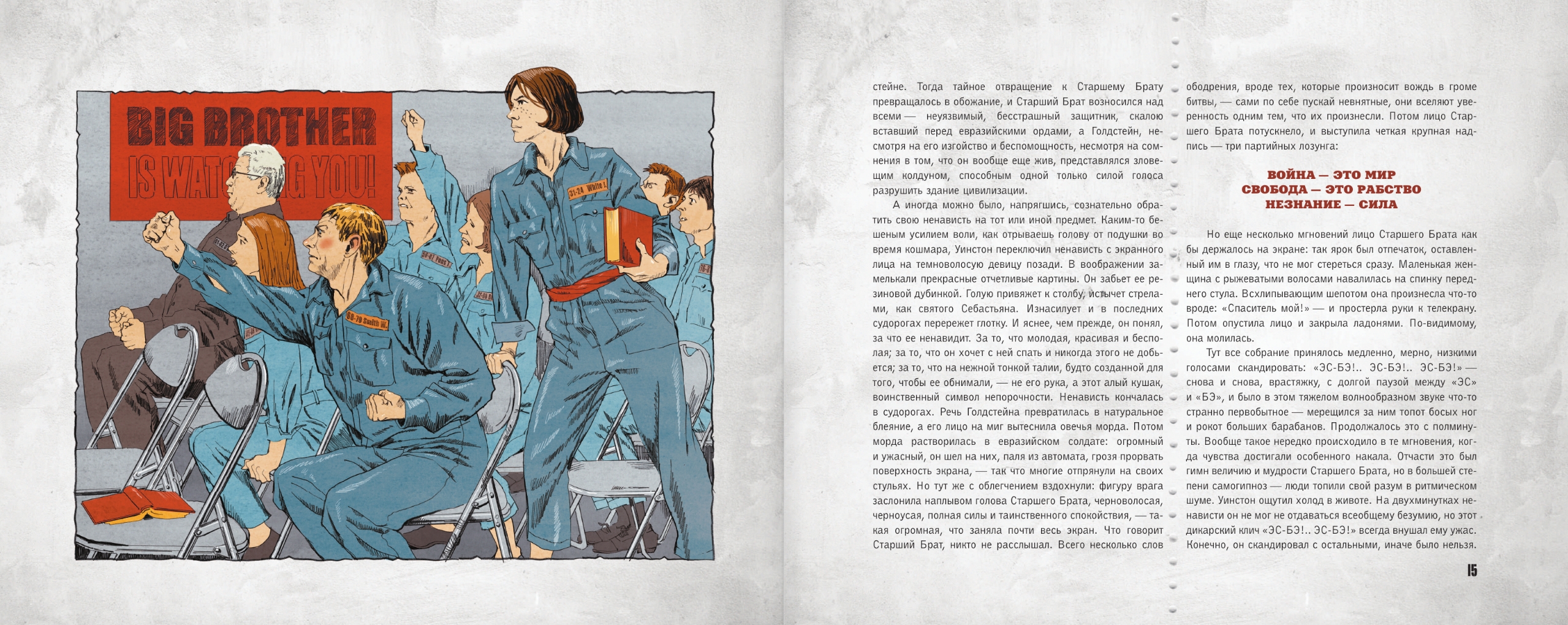 Džordža Orvela romāns "1984", 20. gadsimta lielā distopija, atklāj ne tikai cilvēces būtību, bet arī atspoguļo noteiktu politisku un sociālu parādību pastāvēšanu gadsimtiem ilgi. Publicēts 1949. gadā un sarakstīts pēc Jevgēņija Zamjatina romāna "Mēs", darbs eksplodēja kā bumba, tik aktuāli bija tajā risinātie jautājumi. Pat mūsdienās romāna popularitāte nemazinās. Izdevumu papildina Igora Sakurova ilustrācijas.