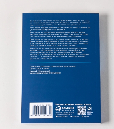 Saskaņā ar Vika Džonsona teikto, gada laikā var paveikt daudz, ja izvirza mērķi un neatlaidīgi virzās uz to. Tiesa, pastāv daži noslēpumi, un autors labprāt dalās ar lasītāju, paskaidrojot, kā sasniegt savus sapņus nedēļu pēc nedēļas. Protams, veltīt gada daļu savas dzīves savu sapņu sasniegšanai nav viegli; tas ir nopietns lēmums, un tas prasīs lielu pacietību. Bet, ja esat stipras gribas, neatlaidīgs, centīgs un apzinīgs, uzskatiet pasauli par savu! Galvenais ir nekad nepadoties un virzīties uz savu mērķi, soli pa solim, nedēļu pēc nedēļas.
