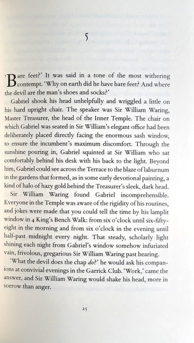 Kad 1901. gada saulainā maija rītā, tieši pulksten divas minūtes pirms septiņiem, advokāts Gabriels Vords iznāk no savām istabām, viņa prātā ir tik daudz domu par savu jaunāko lietu - strīdīgo bērnu bestsellera "Millie the Temple Church Mouse" autorību -, ka viņš tik tikko pamana, ka uz viņa durvju sliekšņa stāv Anglijas Augstākās tiesas lords.