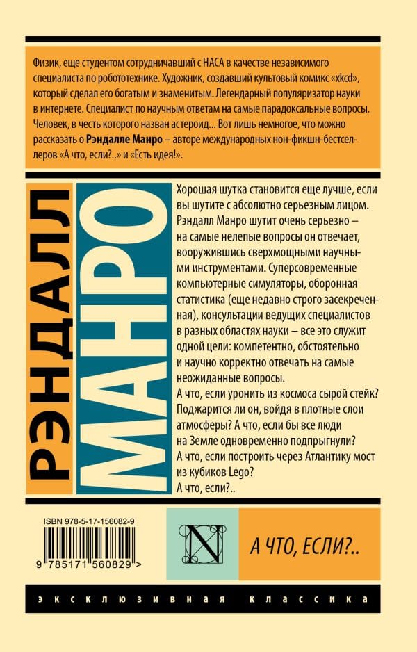 Labs joks ir pat labāk, ja tu joko ar absolūti nopietnu seju. Randall Munroe ļoti nopietni joko - viņš atbild uz smieklīgākajiem jautājumiem, apbruņots ar superspēcīgiem zinātniskiem instrumentiem. Moderni datorsimulatori, aizsardzības statistika (vēl nesen stingri klasificēta), dažādu zinātnes jomu vadošo speciālistu konsultācijas - tas viss kalpo vienam mērķim: kompetenti, rūpīgi un zinātniski pareizi atbildēt uz visnegaidītākajiem jautājumiem.