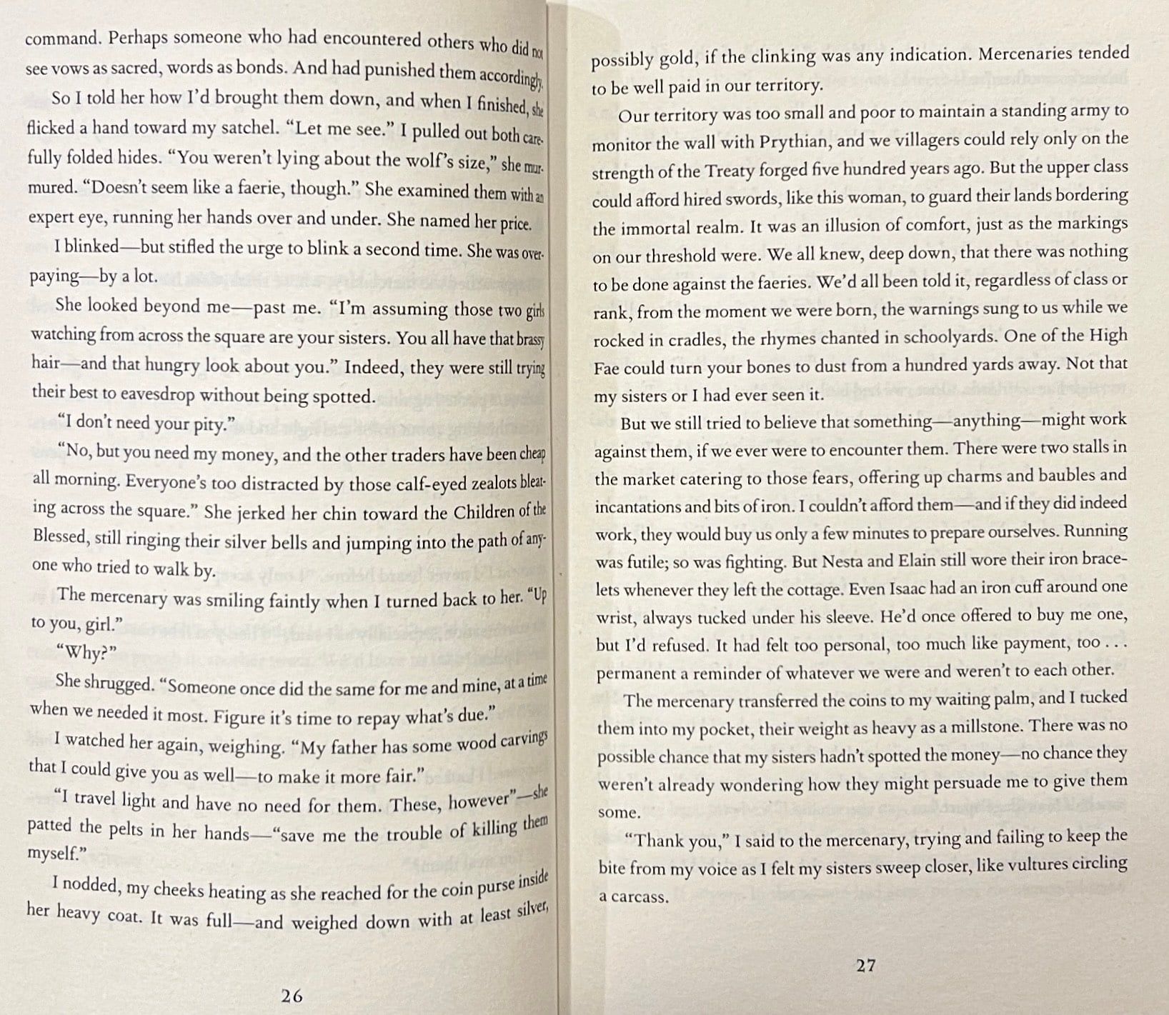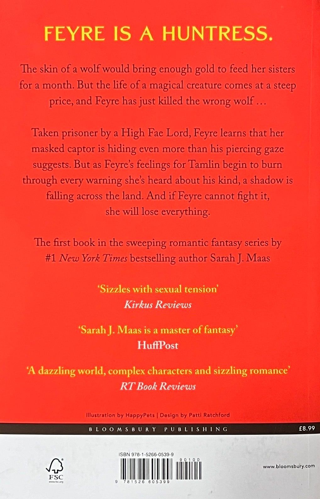 Aizvilkta prom no ģimenes par fejas slepkavību, Feira atklāj, ka viņas sagūstītājs, kura seju aizsedz dārgakmeņiem rotāta maska, slēpj pat vairāk, nekā liecina viņa dzeloņaini zaļās acis. Feirē jūtas pret Tamlinu no naidīguma pārvēršas kaislībā, un viņa uzzina, ka feju zemes ir daudz bīstamāka vieta, nekā viņa to bija domājusi. Un Feirē ir jācīnās, lai salauztu seno lāstu, citādi viņa zaudēs viņu uz visiem laikiem. Sāras J. Maasas (Sarah J. Maas) grāmatas pārdotas miljoniem eksemplāru visā pasaulē un tulkotas 37 valodās. Atklājiet romantisko fantāziju sev.