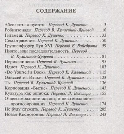 Viens no asprātīgākajiem, smalkākajiem un ironiskākajiem Staņislava Lema darbiem, kas vienlīdz izpaudās kā rakstnieka, filozofa un literatūrkritiķa talanti. Nevainojami radīts recenziju krājums par neesošiem autoriem: prozas rakstniekiem, zinātniekiem un filozofiem. Lems apzināti izvēlējās tādu neparastu formu, kas ļāva viņam iekļauties šajā mazajā grāmatā īsta literāro tendenču un žanru enciklopēdija, filozofiskie jēdzieni un zinātniskās idejas.
