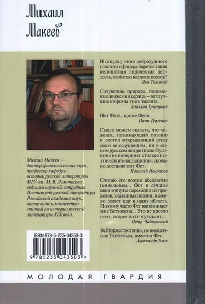 Kāds ir iemesls Feta apsēstībai kļūt par krievu muižnieku? Kāpēc Aleksandrs II "dzejnieku karalim" uzdāvināja rubīna gredzenu, bet Aleksandrs III iecēla viņu par kambarkungu? Kā liriskais dzejnieks kļuva par veiksmīgu uzņēmēju? Kāpēc progresīvu zemes īpašnieku sauca par dzimtcilvēku un mizantropu? Kas viņu satuvināja Turgeņevam un Ļevam Tolstojam un nostādīja pretrunā ar Ņekrasovu un Černiševski? Uz šiem jautājumiem atbildes sniedz filoloģijas doktora Mihaila Makejeva grāmata — lielā dzejnieka, pesimistiskā domātāja un niknā publicista pirmā detalizētā biogrāfija.