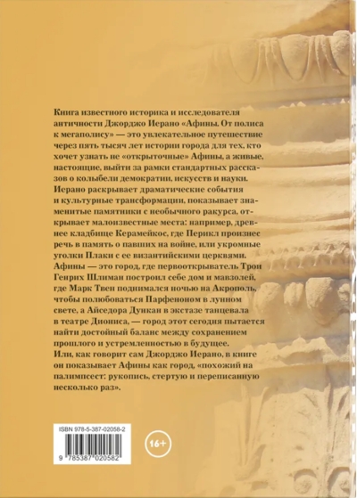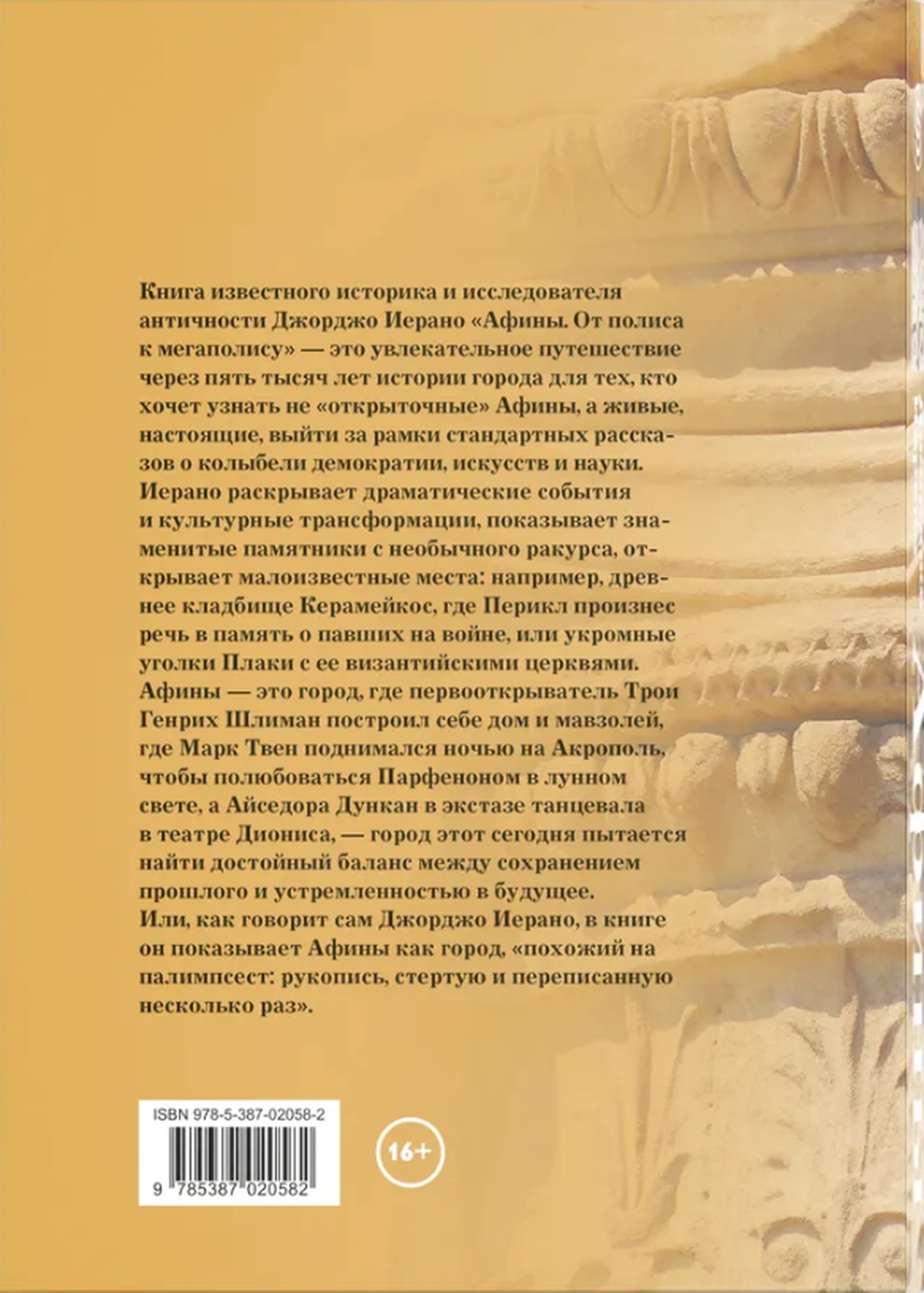 Atēnas — pilsēta, kurā Trojas atklājējs Heinrihs Šlīmanis uzcēla sev māju un mauzoleju, kur Marks Tvens naktī kāpa Akropolē, lai mēnessgaismā apbrīnotu Partenonu, un kur Izadora Dankana ekstātiski dejoja Dionīsa teātrī, — mūsdienās ir pilsēta, kas cīnās, lai atrastu cienīgu līdzsvaru starp pagātnes saglabāšanu un tiekšanos pēc nākotnes. Vai, kā pats Džordžo Ierano saka, savā grāmatā viņš Atēnas attēlo kā pilsētu, kas "atgādina palimpsestu: vairākas reizes izdzēsts un pārrakstīts manuskripts".