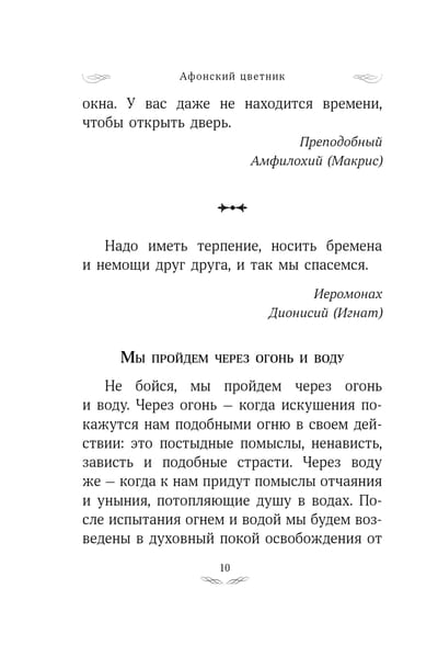 Šajā grāmatā ir ietverti svēto un Atosa vecāko teicieni, piemēram: Dionisijs no Olimpa, Jāzeps Hesihasts, Paisijs Atonietis, Siluāns Atonietis par dzīvi, ticību, dvēseles tīrību, lūgšanu un mīlestību. Klusa gaisma un laipna vienkāršu vārdu gudrība instrukcijās, kas dziedina dvēseli un palīdz iet dzīves ceļu.
