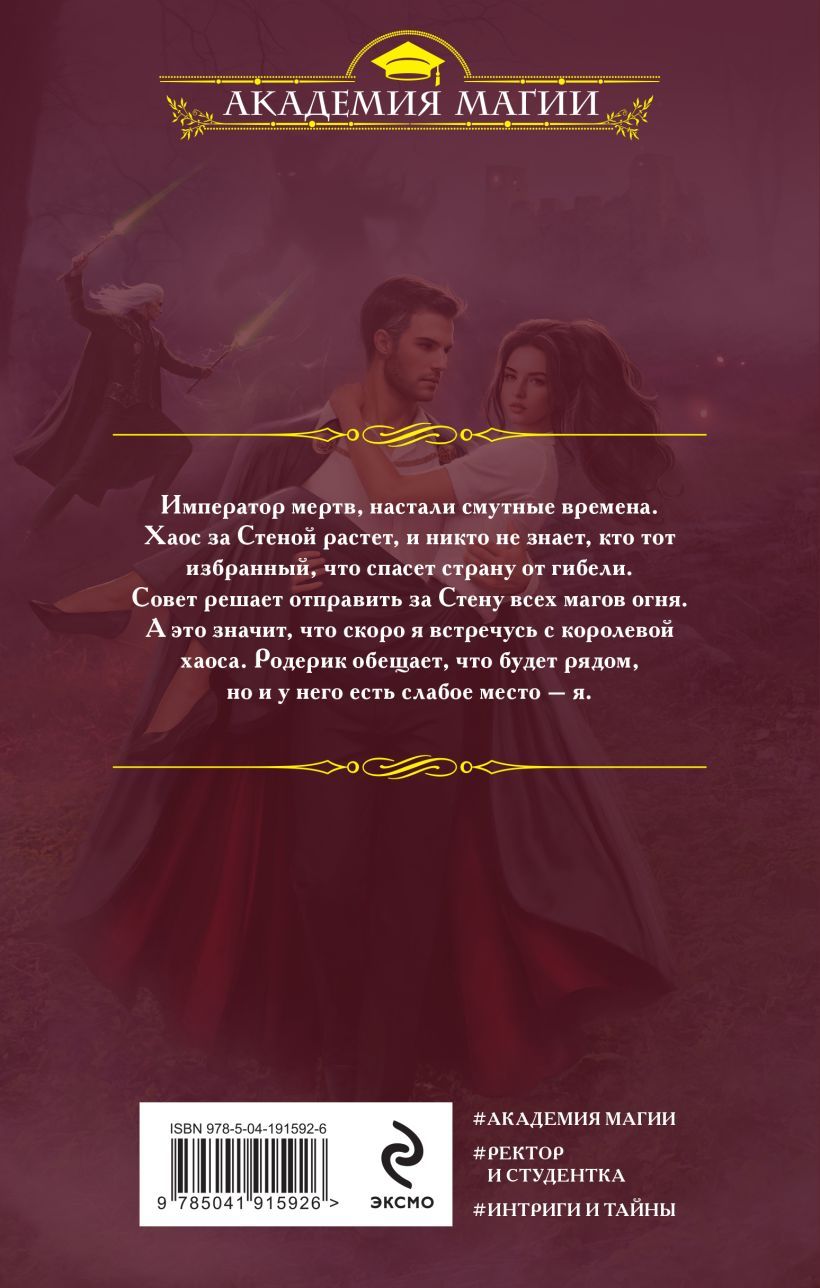 Imperators ir miris, ir pienākuši nemierīgi laiki. Aiz Mūra aug haoss, un neviens nezina, kurš ir izredzētais, kurš izglābs valsti no iznīcības. Padome nolemj nosūtīt visus uguns magus aiz sienas. Un tas nozīmē, ka drīz es satikšu haosa karalieni. Roderiks sola tur būt, bet arī viņam ir vājā vieta – es.