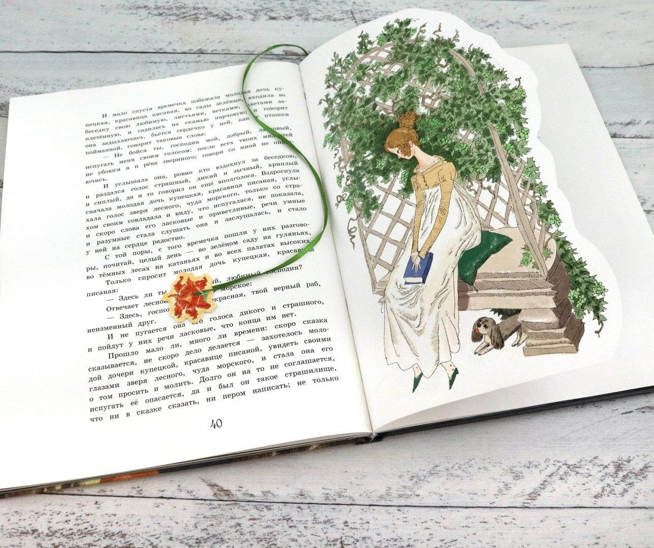 "The Scarlet Flower" - senais stāsts par apburto princi tagad pieejams interaktīvā izdevumā! Sergeja Aksakova literārā pasaka, kas pierakstīta "no Pelagejas Kļučenicas vārdiem", visā savā krāšņumā parādās uz izrādes grāmatas lappusēm, un īsta pērle ir valoda, kādā tā izstāstīta. Lasītāju gaida īss ceļojums uz Trideviāta valstību, Trīdeviāta valsti, kur aiz jūras, aiz biezokņa necaurejama viņa priekšā izvēršas dzīvas gleznas - daudzslāņainas apjumtas panorāmas. Katra no tām ir kā izsmalcināta un sarežģīta aina papīra teātrī. Būs šajā grāmatā arī maģiska pils ar neredzētiem dārziem, un skaista tirgotāja meita, un briesmonis - meža zvērs, un pērkona bultas, un laimīga izglābšanās no burvestībām. Un, protams, uz skudru kalna augs brīnums, brīnumains brīnums, brīnumains brīnums - skarainais zieds.