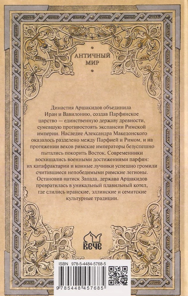 Skitu izcelsmes Arsacīdu dinastijai izdevās apvienot Irānu un Babiloniju, izveidojot Partu impēriju — vienīgo seno lielvaru, kas pretojās Romas impērijas ekspansijai. Aleksandra Lielā mantojums tika sadalīts starp Partu un Romu, un gadsimtiem ilgi Romas imperatori neveiksmīgi mēģināja iekarot Austrumus, it kā pats liktenis būtu traucējis viņiem atkārtot Aleksandra triumfu. Laikabiedri apbrīnoja partu militāros sasniegumus: viņu katafrakti un jātnieku strēlnieki veiksmīgi sakāva it kā neuzvaramos romiešu leģionus. Arsacīdi prasmīgi izmantoja visus antiromiešu spēkus, un romiešu aplenkums Jeruzalemē iezīmēja šīs konfrontācijas kulmināciju. Partu ģenerāļu militārā stratēģija izrādījās tik efektīva, ka tā joprojām ir aktuāla. Apturējusi Rietumu uzbrukumu, Arsacīdu impērija kļuva par unikālu kausēšanas katlu, kurā saplūda irāņu, hellēņu un semītu kultūras tradīcijas. Magi no Partas ieradās pielūgt Pestītāja dzimšanu, un apustuļi nesa kristietību visos Austrumos, tostarp Partā. Arsakidu dinastijas karalis Tiridats kļuva par pirmo kristīgo senās pasaules valdnieku. Šis pētījums, kas balstīts uz jaunākajiem arheoloģiskajiem, numismātiskajiem un militāri vēsturiskajiem atklājumiem, kā arī mūsdienu interpretācijām par Tuvo Austrumu kultūras un garīgo attīstību, būs interesants visiem senās vēstures cienītājiem.