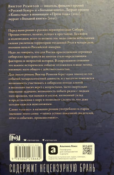 Šis romāns ir par krievu Sibīrijas pionieriem: medniekiem, kazakiem, tirgotājiem un zemniekiem. Bez karaspēka un komandieriem, tikai pusgadsimta laikā, šie cilvēki ar ļoti ierobežotiem spēkiem četrkāršoja toreizējās Krievijas teritoriju, liekot pamatus Krievijas impērijai. Lieki piebilst, ka šo plašo Sibīrijas plašumu aneksija daudzējādā ziņā bija noteicošais faktors Krievijas sarežģītajā vēsturē. Mūsdienu apziņā šis svarīgais vēsturiskais notikums ir nonācis leģendu līmenī, kurām ir maz līdzības ar realitāti. Savā romānā Viktors Remizovs ņem vienu epizodi no šiem notikumiem pirms četrsimt gadiem, un lasītājam tiek dota iespēja piedalīties Sibīrijas ekspedīcijā, kas stiepjas vairākus tūkstošus jūdžu garumā ar sarežģītiem, bieži vien nāvējošiem uzdevumiem; iespēja būt līdzās tā laika cilvēkiem, kuru prasmes un iemaņas, dzīvesveids un pasaules uzskats ļāva viņiem paveikt to, kas pat šodien šķiet neiespējams.