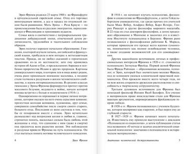 Savā grāmatā "Cilvēka destruktīvisma anatomija" Erihs Fromms mēģināja filozofiski pārdomāt agresijas un destruktīvisma būtību cilvēkā, sabiedrībā un vēsturē, apkopojot pētījumus par šo tēmu no dažādām zinātnes nozarēm, tostarp vēstures, paleontoloģijas, fizioloģijas un psiholoģijas.