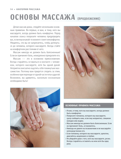 - sadaļas "Brīdinājumi" ar svarīgu informāciju un sadaļas "Masāžas padomi", kurās sniegta plašāka informācija par konkrētām kustībām, to indikācijām un kontrindikācijām;