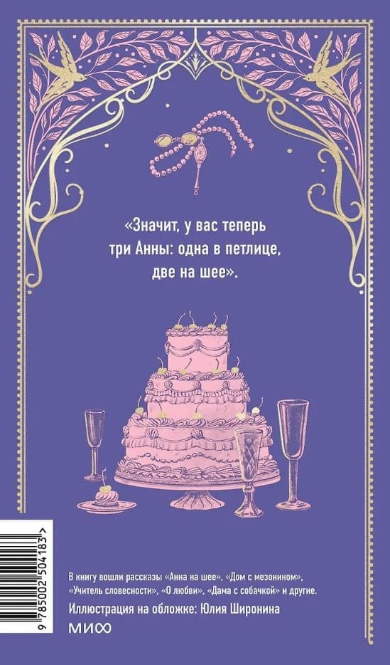 Grāmatā iekļauti stāsti "Anna uz kakla", "Māja ar mezanīnu", "Literatūras skolotājs", "Par mīlestību", "Dāma ar suni", "Ariadna" un citi.