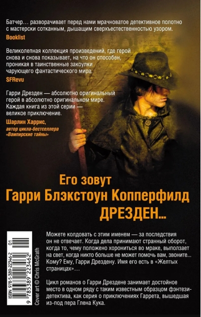 Viņa vārds ir Harijs Blekstouns Varafīlds Dresdens. Ar šo vārdu var mest burvestības — viņš nav atbildīgs par sekām. Kad lietas iegūst dīvainu pavērsienu, kad atklājas tas, kam lemts palikt ēnā, kad neviens cits nevar jums palīdzēt, zvaniet... Kam? Viņam, Harijam Dresdenam. Viņa vārds ir Dzeltenajās Lapās... Kā jūs justos, ja pēkšņi uzzinātu, ka jums ir meita? Un kā jūs justos, ja jums pateiktu, ka jūsu meita ir nolaupīta? Tieši tā, divkāršs šoks. Viens prieka, otrs sašutuma. Un, lai viņu glābtu, jums jāupurē viss, kas jūsu dzīvē ir vērtīgs. Lai glābtu savu meitu, Harijam Dresdenam jāapvienojas ar spēkiem, kas ir atklāti naidīgi pret viņu, jāveic darbības, kas parastam cilvēkam nav iespējamas. Un pat ja liktenis viņu piespiež, viņš nesaudzēs savu dzīvību ("Pārmaiņas"). Dresdena problēma ir tā, ka viņš ir vienīgais profesionālais burvis visā alternatīvajā Čikāgā, un nav neviena cita, pie kā vērsties. Līdz ar to neskaitāmie konflikti. Reizēm pret viņu vērsīsies neprātīgi nekromanti, reizēm viņš satiks varenu, kronētu feju, reizēm noslēpumainie Melnās koledžas vampīri būs naidīgi pret Hariju... Tieši šādi stāsti, reizēm nāvējoši nopietni, reizēm absurdi smieklīgi, veido "Elles darbu" — izlasi no bagātīgā materiāla, kas glabājas Dresdenas personīgajos arhīvos. Harija Dresdena sērija ierindojas tieši līdzās tādiem atzītiem fantāzijas detektīvromānu piemēriem kā Glena Kuka Gareta sērija.