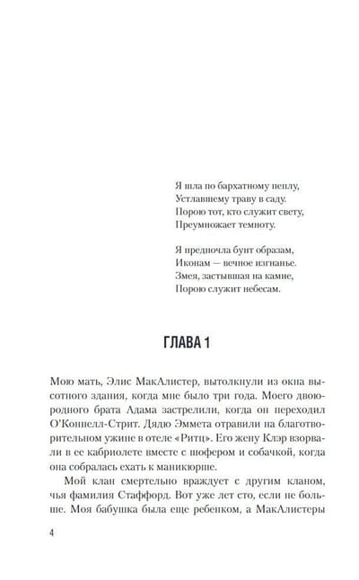 Starp Makalisteriem un Stafordiem ir bijis ilgstošs un asiņains strīds. Vietās, kur krustojas abu klanu ceļi, paliek pelni, šķelto stiklu un gliemežvāku apvalki.
