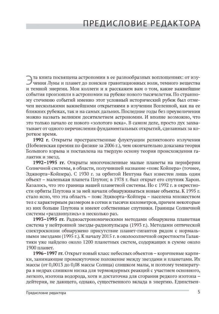 Šī grāmata ir veltīta astronomijai tās dažādajās izpausmēs: sākot ar Mēness un planētu izpēti un beidzot ar gravitācijas viļņu, tumšās matērijas un tumšās enerģijas pētījumiem. Sternberga Astronomijas institūta (Maskavas Valsts universitātes) zinātnieki atstāsta svarīgākos notikumus astronomijā jaunās tūkstošgades sākumā. Savādas sakritības dēļ tieši šo tradicionālo pagrieziena punktu iezīmēja vairāki revolucionāri atklājumi astronomijā.