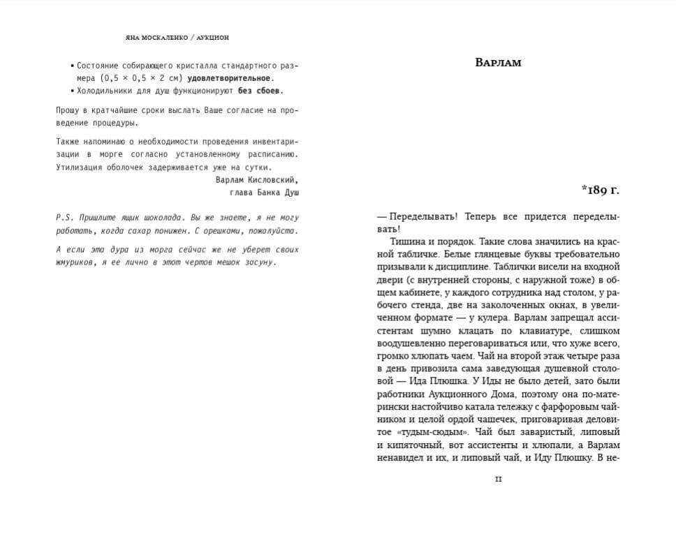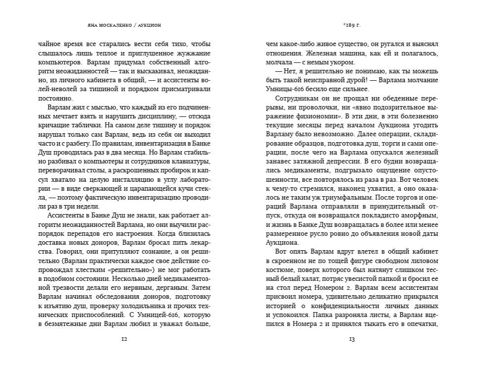Autora radītajā postkatastrofālajā pasaulē ārēji pārtikušo Pilsētu, kas apsēsta ar Progresa ideju, no noziedzīgajiem kvartāliem atdala Siena. Vērtība ir ne tikai tradicionālajiem resursiem, labam ūdenim, kvalitatīvai pārtikai un apģērbam, bet arī tādai šķietami nemateriālai substancei kā dvēselei. Tas tiek “audzēts”, to pērk un pārdod, ap to tiek veidota visa ekonomiskā sistēma, un monopolu tur viena organizācija - Dvēseļu banka. Šo reto preci, kas pagarina daudzu svarīgu Pilsētas cilvēku dzīvi un jaunību, var iegādāties tikai izsolē. Katra varoņa liktenis ir saistīts ar Izsoļu namu, kas atrodas bijušā zinātniskā progresīvā centra ēkā, un ar šī nama radītāju N. Č.