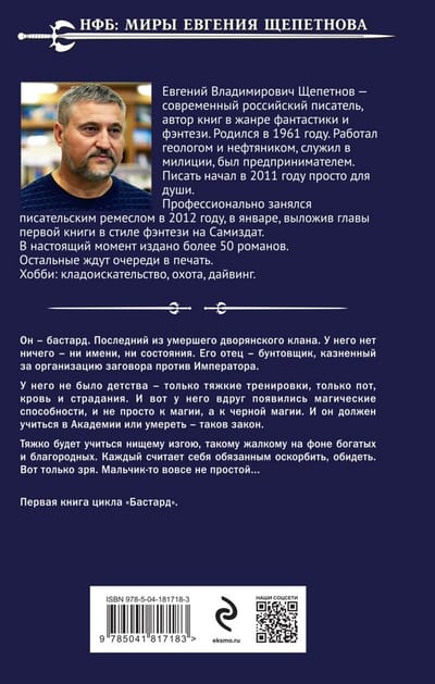 Jevgeņijs Ščepetnovs - bijušais policists, ģeoloģijas inženieris, ceļotājs un piedzīvojumu meklētājs. Viņam ir unikāla pasaules pieredze, kas palīdz rakstīt romānus populāros žanros: fantāzija un trāpījumi citās pasaulēs.