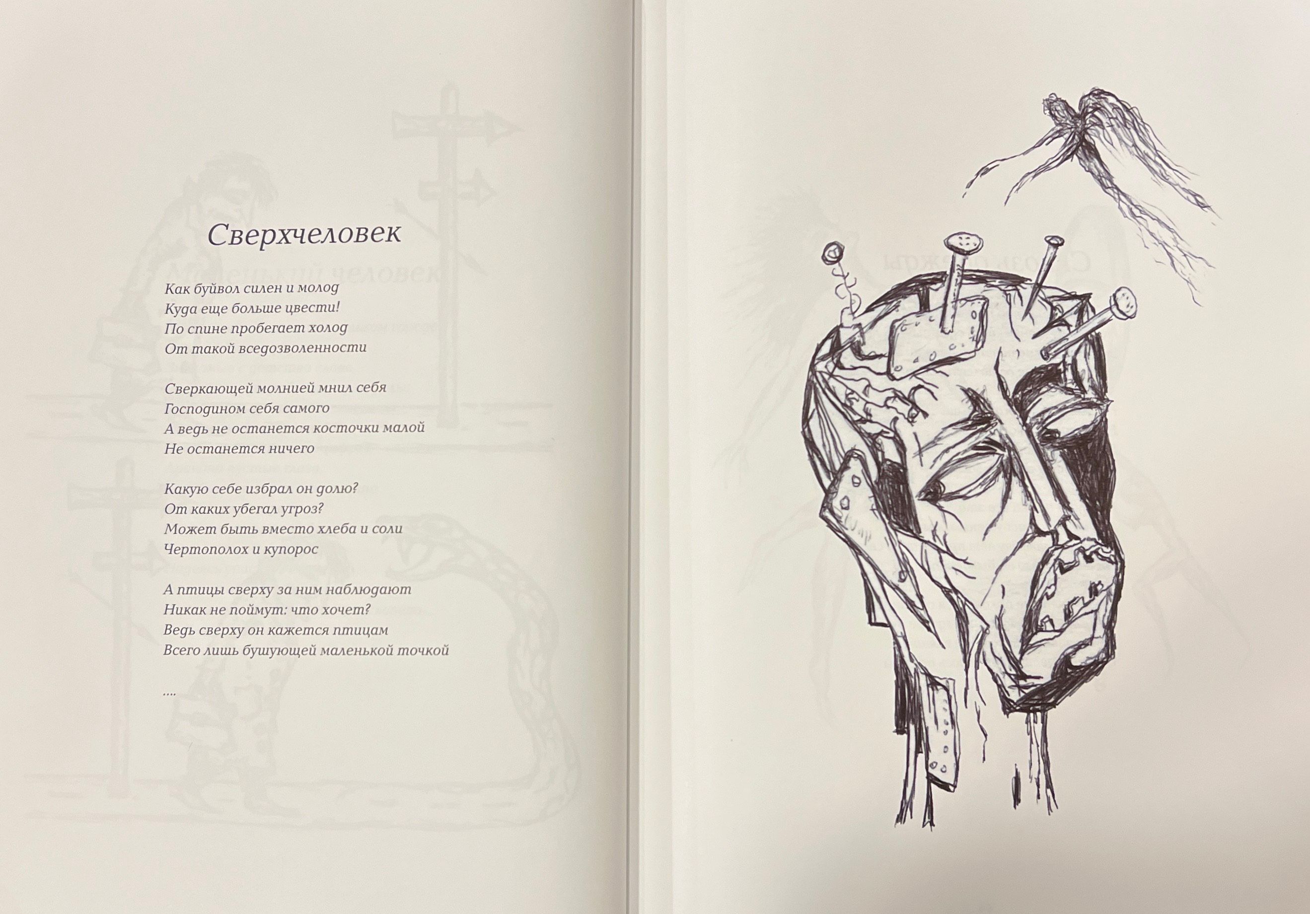 Krājumā "Skaņas un simboli", "Dubultdibens (Septiņas telpas)", "Dzejoļi un grafika".