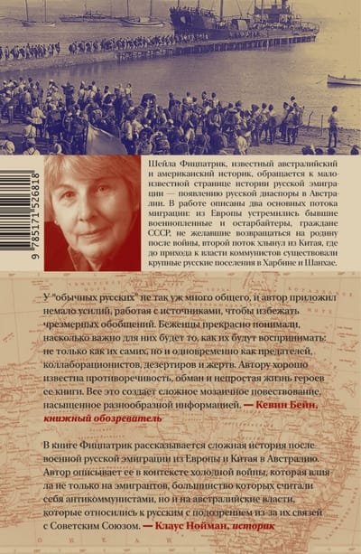 Rusiem Austrālijā veltīts neparasts jauns darbs, ko sarakstījusi slavenā austrāliešu un amerikāņu vēsturniece Šeila Fitzpatrika. Pēc Otrā pasaules kara tieši Zaļais kontinents kļuva par jauno mājvietu tūkstošiem pārvietoto iedzīvotāju - cilvēkiem, kuri kara laikā bija izklīduši pa Eiropu un dažādu iemeslu dēļ nevēlējās atgriezties mājās PSRS. Austrālijas varas iestādes savukārt centās atrisināt darbaspēka trūkuma problēmu valstī, tāpēc sadarbība, lai arī ne bez mākoņiem un ne ideāla, tomēr bija abpusēji izdevīga: tūkstošiem cilvēku iekrāva tvaikoņu kuģos, lai dotos uz jaunu dzīvi.
