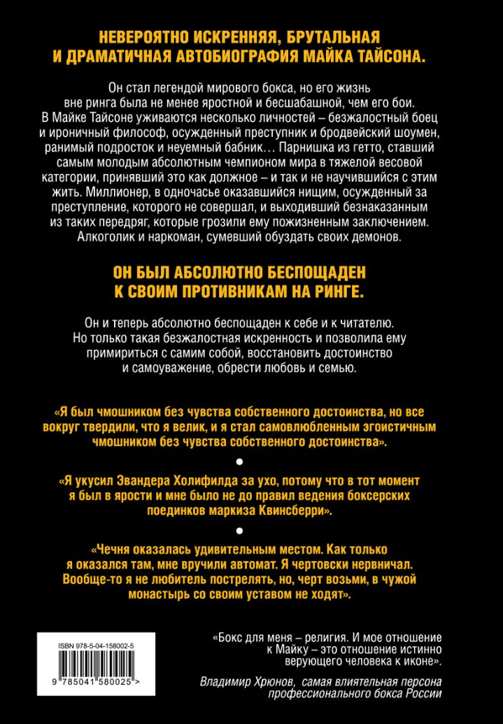 Maiks Taisons līdzāspastāv vairākas personības - nežēlīgs cīnītājs un ironisks filozofs, notiesāts noziedznieks un Brodvejas šovmenis, neaizsargāts pusaudzis un neatslābstošs sievietizētājs ... Puisis no geto, kurš kļuva par jaunāko absolūto pasaules čempionu smagsvara kategorijā, to pieņēma par pašsaprotamu - un nekad iemācījās ar to sadzīvot. Miljonārs, kas pēkšņi izrādījās ubags, notiesāts par noziegumu, ko viņš nav izdarījis, un parādījās nesodīts no tādām nepatikšanām, kas viņam draudēja ar mūža ieslodzījumu. Alkohols un narkomāns, kam izdevās kontrolēt savus dēmonus.
