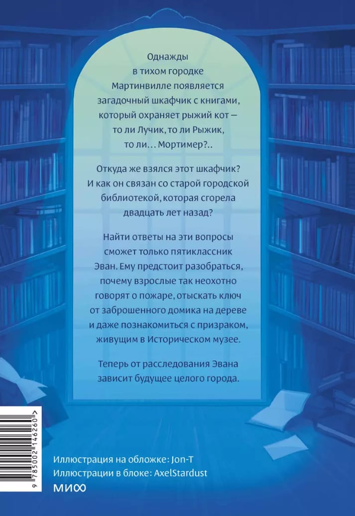 Kādu nakti Martinvilas mazpilsētā parādās noslēpumaina bibliotēka - skapītī, kuru sargā rudais kaķis. Piektās klases skolnieks Evans no skapīša paņem pāris grāmatas - un visa viņa dzīve mainās. Evans un viņa labākais draugs Rafs ātri vien saprot, ka viena no vecajām grāmatām ir saistīta ar ugunsgrēku, par kuru pieaugušie kaut kādu iemeslu dēļ nevēlas runāt. Zēni paši sāk izmeklēšanu. Vai viņiem izdosies noskaidrot senu noslēpumu? Tagad no tā ir atkarīga visas pilsētas nākotne.