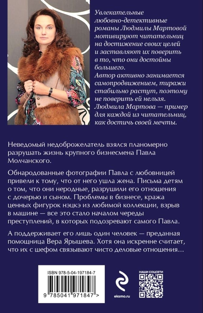 Nezināma ļaunprātīga persona sāka sistemātiski iznīcināt liela uzņēmēja Pāvela Molčanska dzīvi. Publiskotās fotogrāfijas, kurās Pāvels bija redzams kopā ar savu mīļāko, noveda pie tā, ka sieva viņu pameta. Vēstules viņa bērniem, ka viņi nav radinieki, iznīcināja viņa attiecības ar meitu un dēlu. Problēmas biznesā, vērtīgu netsuke figūriņu zādzība no viņa mīļākās kolekcijas, sprādziens viņa automašīnā - tas viss kļuva par sākumu virknei noziegumu, kuros aizdomās tiek turēts pats Pāvels... Un tikai viens cilvēks viņu atbalsta - viņa uzticamā asistente Vera Jariševa patiesi tic, ka viņu ar priekšnieku saista tīri biznesa attiecības....