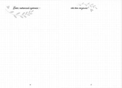Šī piezīmju grāmatiņa patiks autores daiļrades cienītājiem un ikvienam, kurš novērtē skaistas piezīmju grāmatiņas un bukletus. Šie priecīgie un skumjie, vienkāršie un gudrie citāti atbalstīs jūs grūtos brīžos, dos spēku vai palīdzēs paskatīties uz lietām no citas perspektīvas. Lappuses ir dekorētas ar viegliem, elegantiem zīmējumiem, kas atspoguļo iemīļotā dueta atmosfēru, netraucējot piezīmēm.
