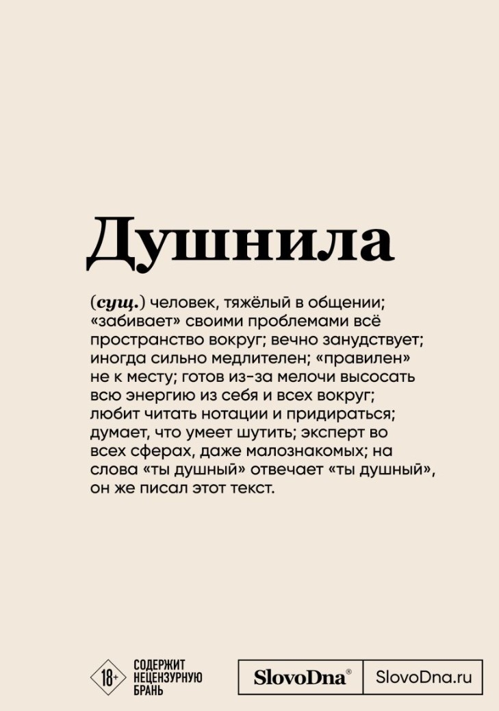 Projekts SlovoDna tika uzsākts 2019. gadā. Tā dibinātājs Kirils Karavajevs ģenerēja vārdus un smieklīgas definīcijas un ievietoja tās sociālajos tīklos. Šodien SlovoDna ir liela fanu bāze, sava unikāla prece un daudzi labi pazīstami uzņēmumi tās portfelī.